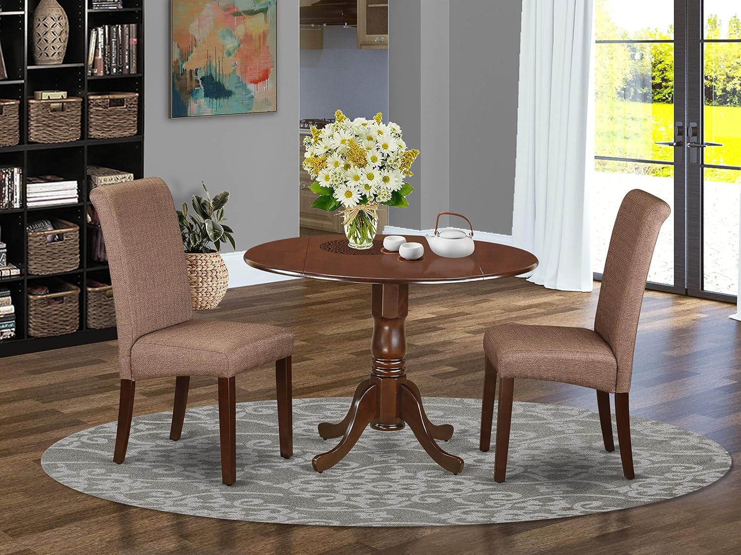Dining Room Sets With Fabric Chairs - Buy East West Furniture Dining Room Set 5 Pieces Dark Coffee Linen Fabric Padded Parson Chairs Mahogany Finish Solid Wood Two 9 Inch Drop Leaves Kitchen Table And Frame Online In Turkey B07v259vzx / Complete dining room sets from rooms to go.. Thick cotton that is made for upholstery is a great choice if your dining room chairs have moderate use. Set of 2 alen fabric dining chair wing chair with tufted buttons and nail heads. Different sizes, styles, and types of dining room furniture sets. Plus, this fabric can be cleaned very easily with a spot cleaner. This set pegs transitional style in your space with brass nailhead trim, sloped arms and patterned upholstery.